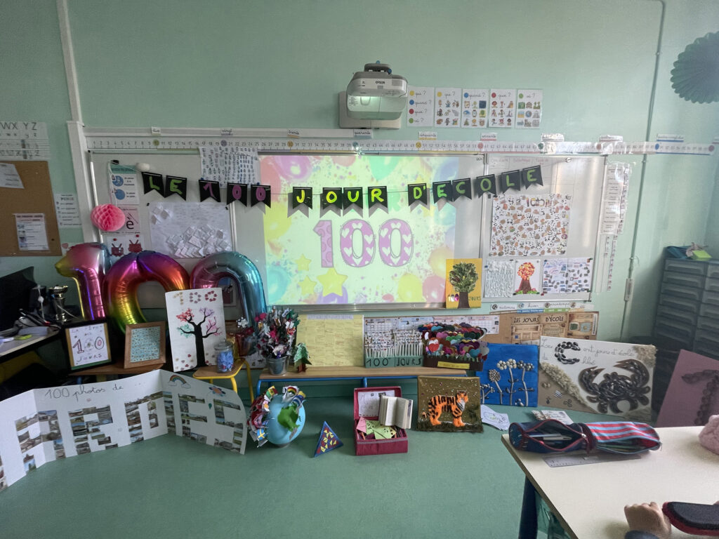 Les élèves ont réalisé, pour cela, des productions illustrant ce centième jour. L’une d’elles est faite de 100 photos de la ville de Viarmes ! Le directeur de l’école et l’équipe éducative félicitent les enfants pour ces créations, toutes aussi belles les unes que les autres !