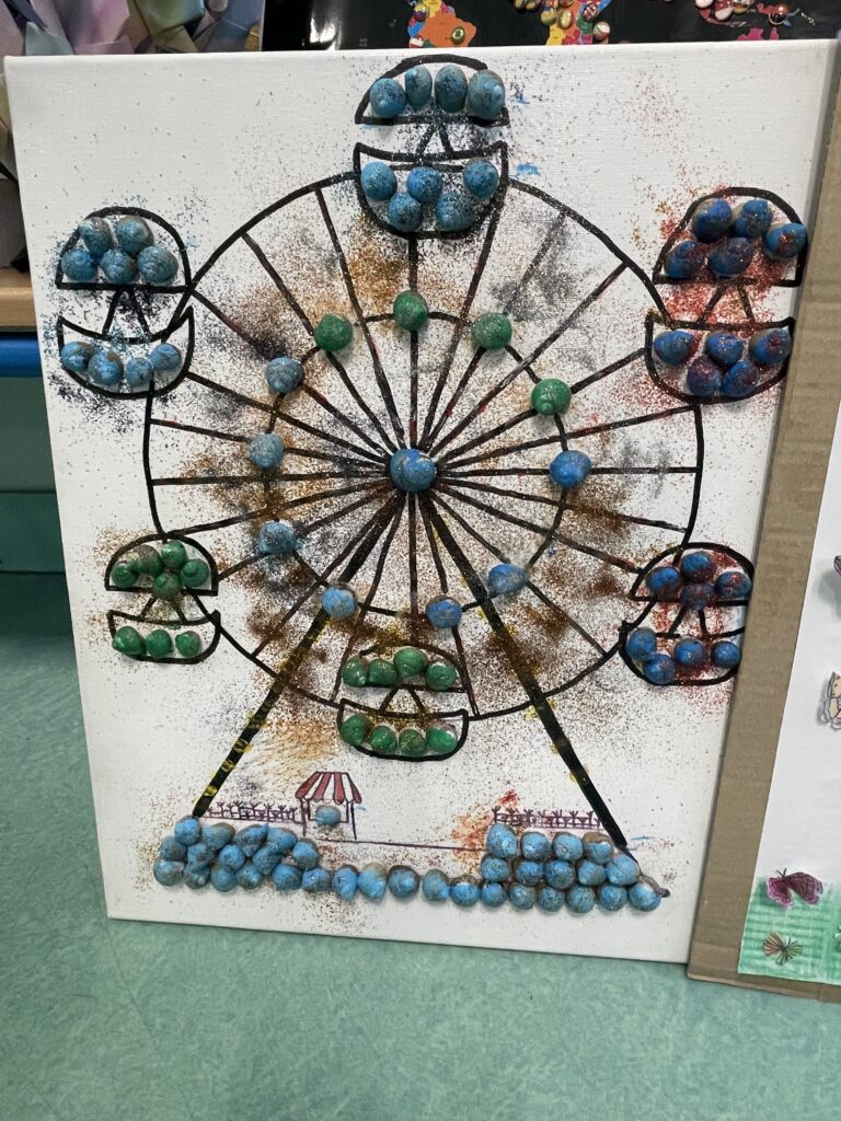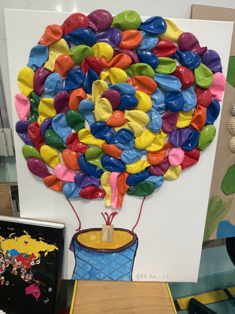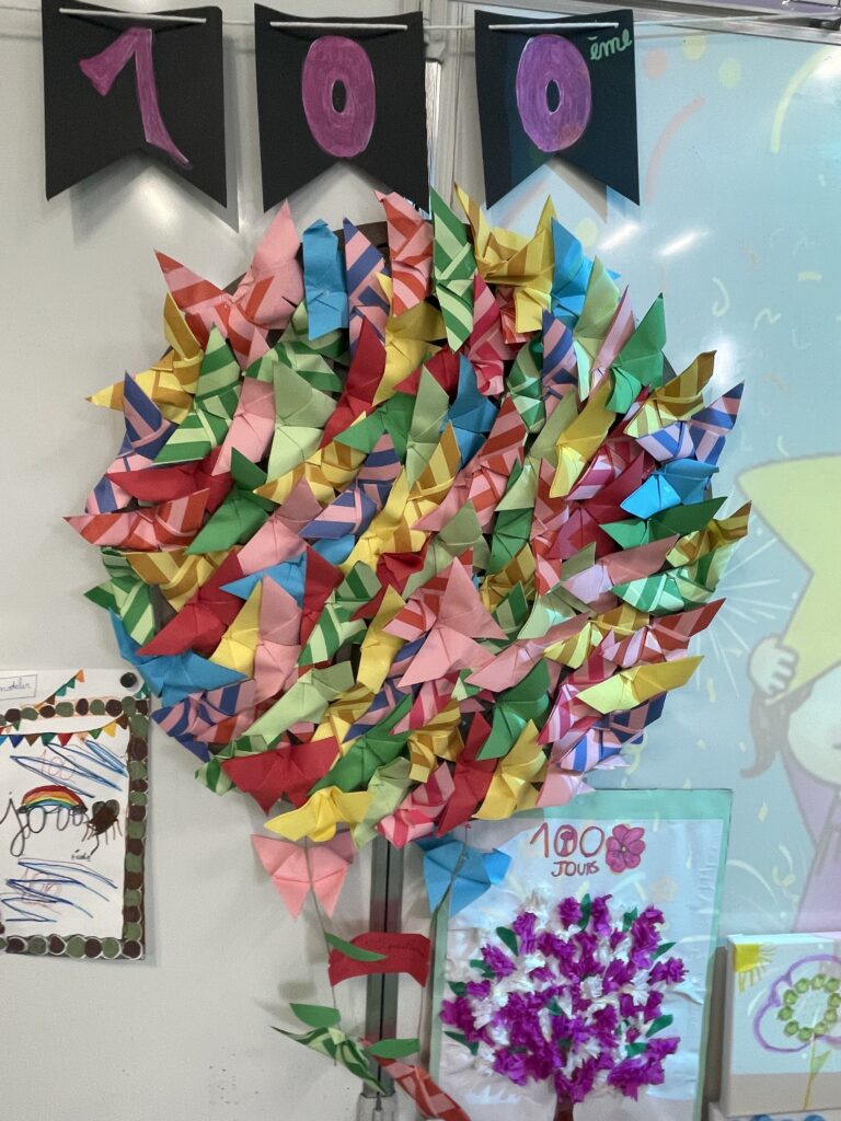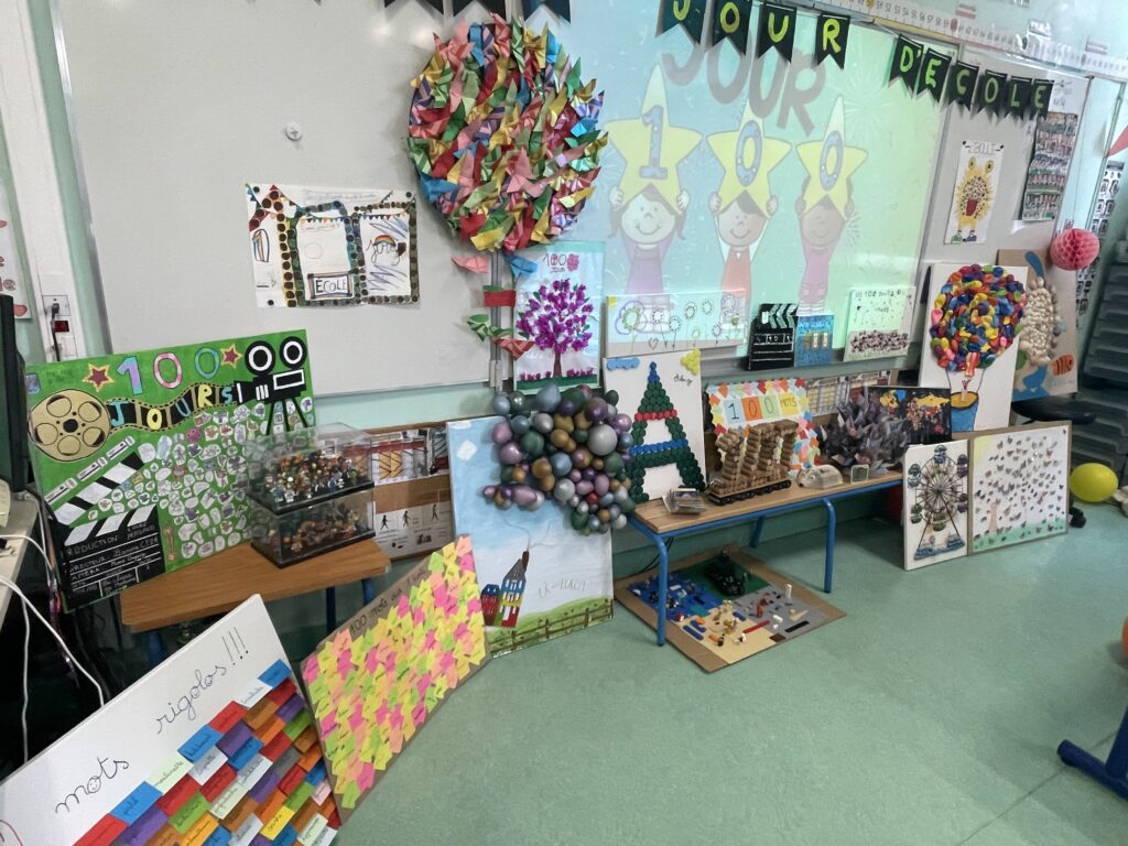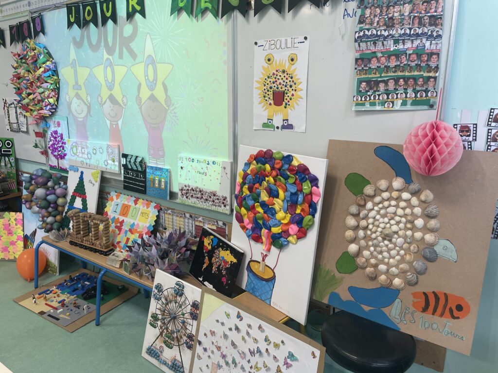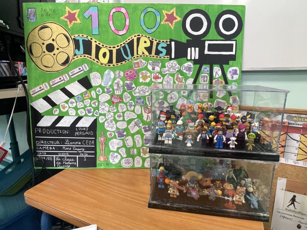 Les élèves ont réalisé, pour cela, des productions illustrant ce centième jour. L’une d’elles est faite de 100 photos de la ville de Viarmes.