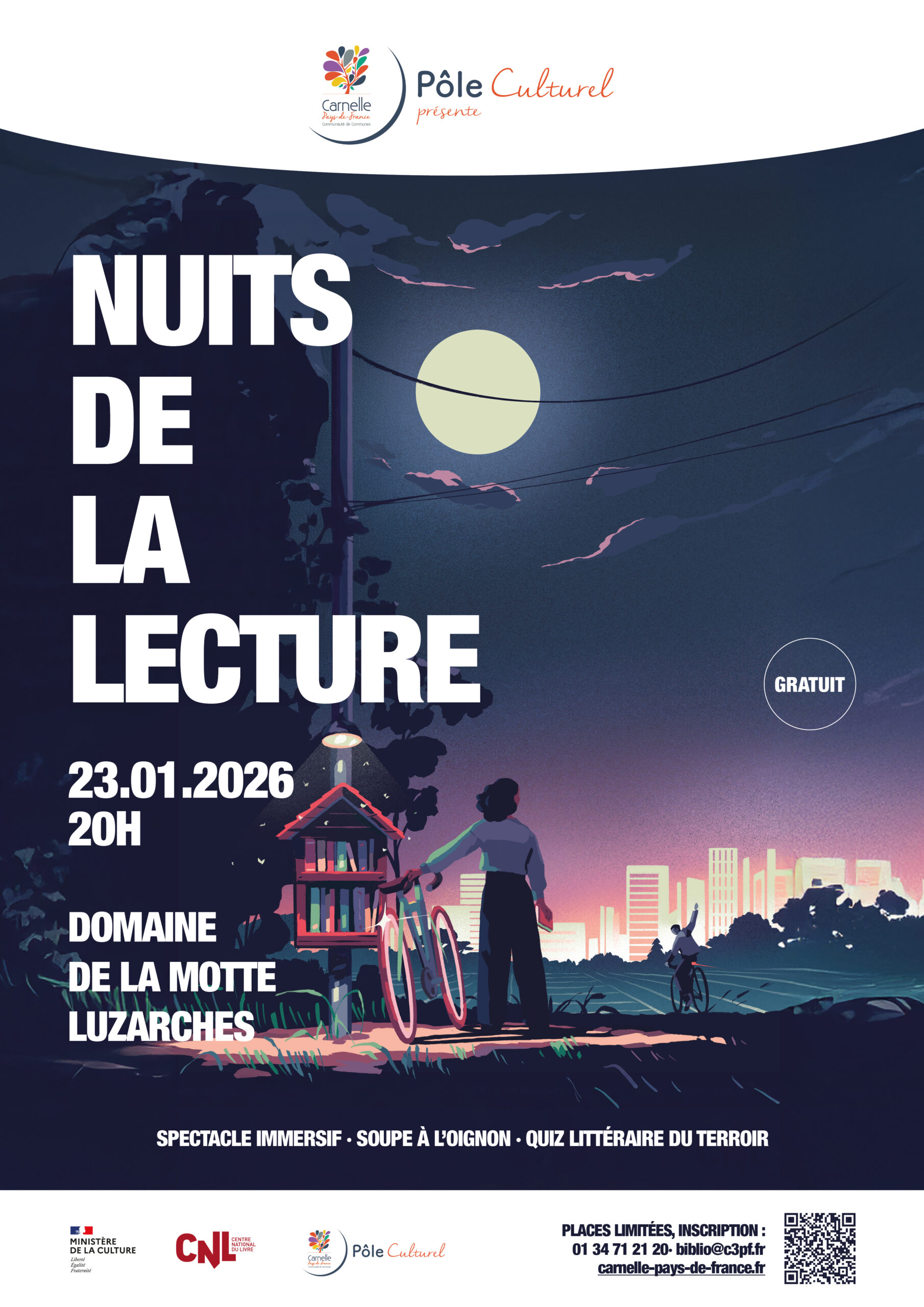 Les 10èmes Nuits de la Lecture, organisées par le Centre national du livre sur proposition du ministère de la Culture, se tiendront du 21 au 25 janvier 2026, autour du thème “Villes et campagnes”. Votre réseau intercommunal de bibliothèques s’inscrit dans cet événement national et vous propose, vendredi 23 janvier, une soirée d’animations exceptionnelles !