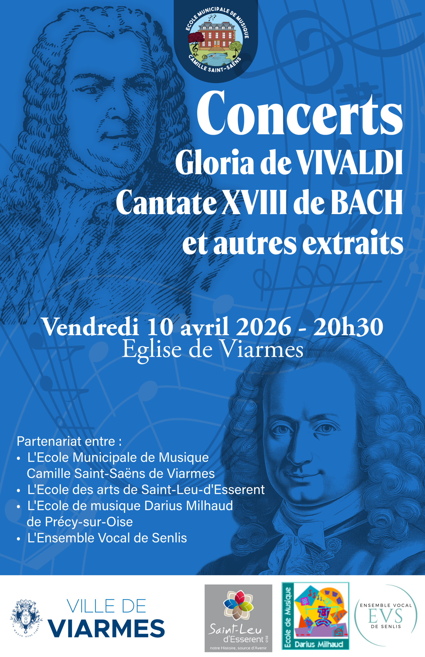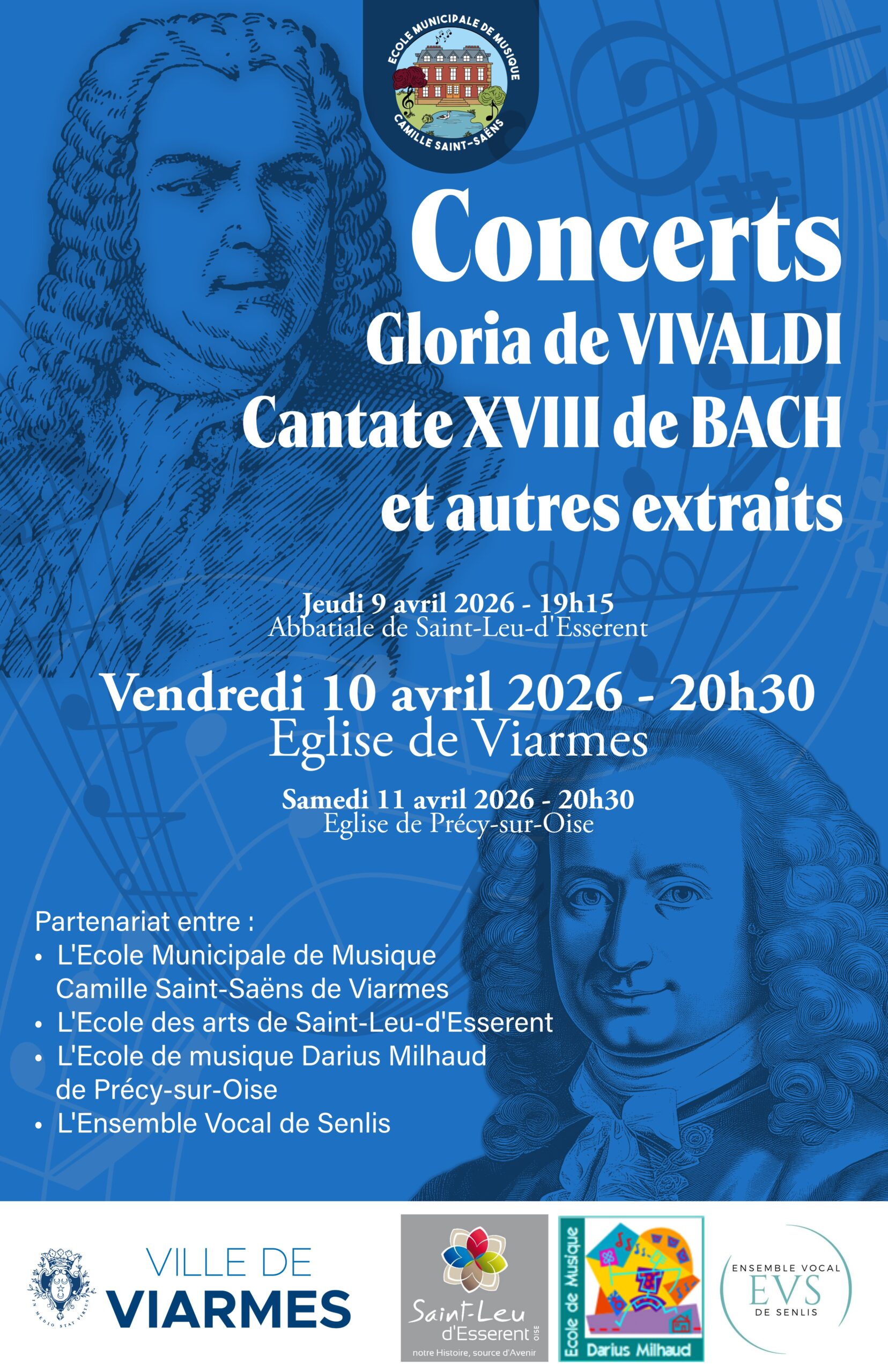 Il s’agit d’un partenariat entre l’Ecole Municipale de Musique Camille Saint-Saëns de Viarmes, l’Ecole des arts de Saint-Leu-d’Esserent, l’Ecole de musique Darius Milhaud de Précy-sur-Oise et l’Ensemble Vocal de Senlis.