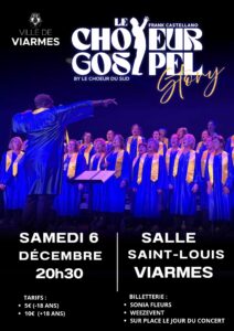 La commission Culture organise un concert, le samedi 6 décembre 2025, à 20h30, à la salle Saint-Louis, avec le groupe Le Chœur Gospel.