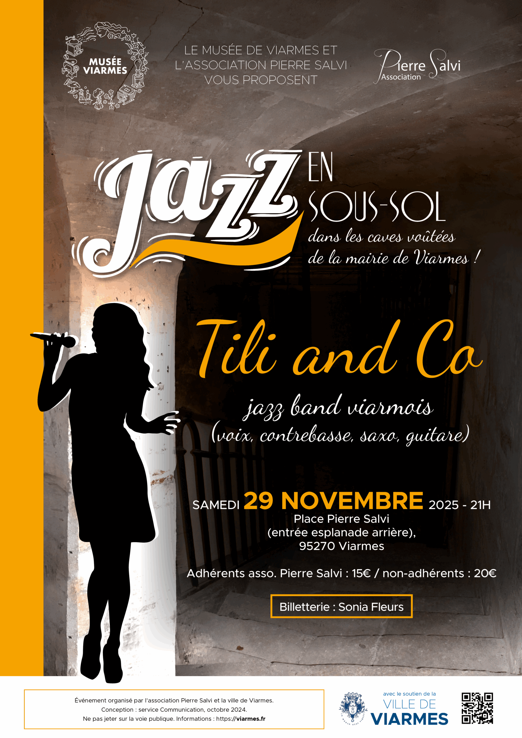 L’association Pierre Salvi, animatrice du musée de Viarmes, propose un concert jazz le samedi 29 novembre 2025, à 21h. À cette occasion, le groupe Tilli and Co interprètera des morceaux de jazz; dans les caves de la mairie de Viarmes.