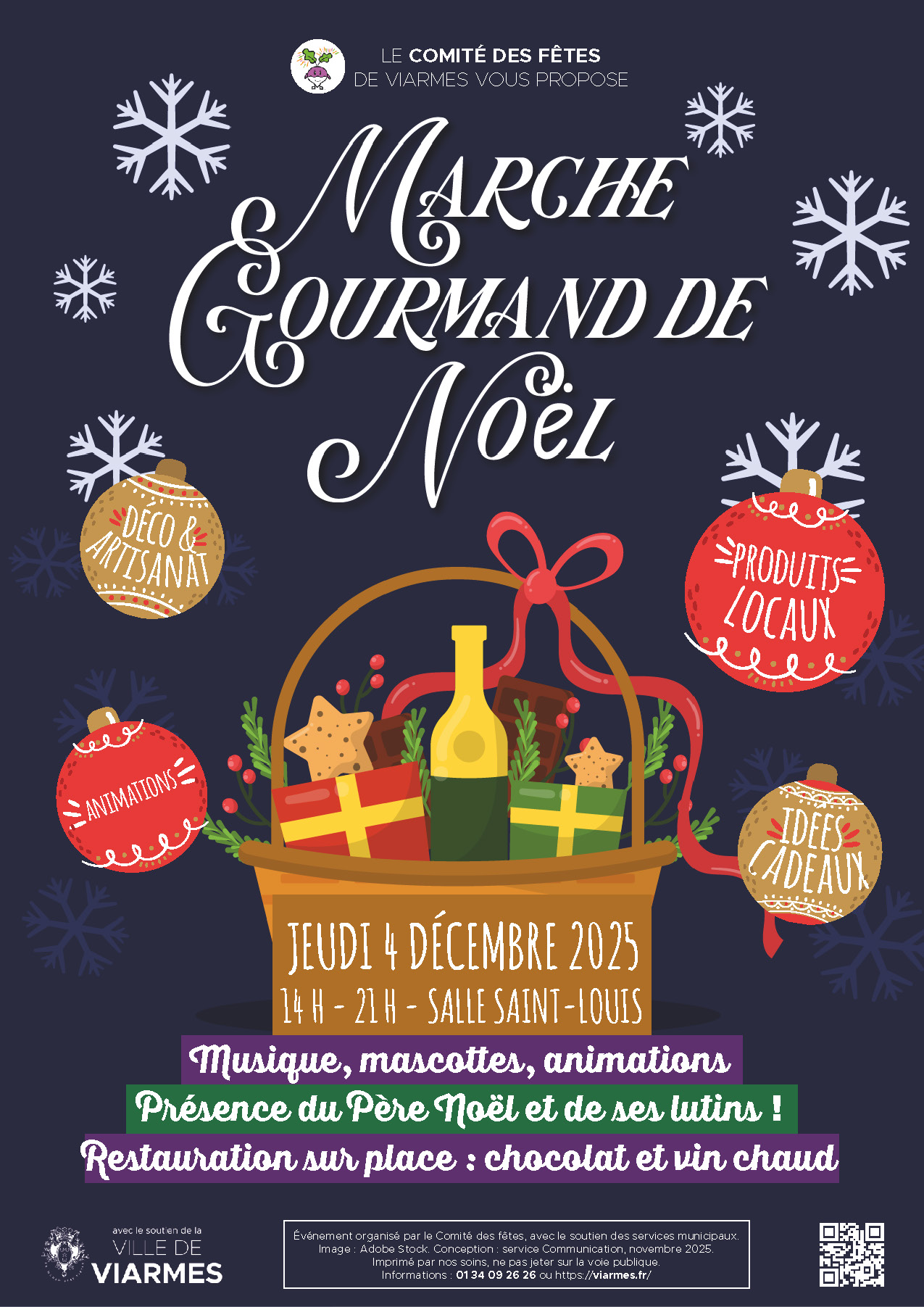 Le comité des fêtes de la ville de Viarmes propose un marché gourmand de Noël, le jeudi 4 décembre 2025, de 14h à 21h, Salle Saint-Louis.