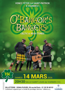 Venez découvrir le groupe O’ Bangor’s Bangers, pour la première fois à Viarmes ! Ses quatre musiciens poly-instrumentistes, interpréteront de la musique traditionnelle irlandaise et celtique.
