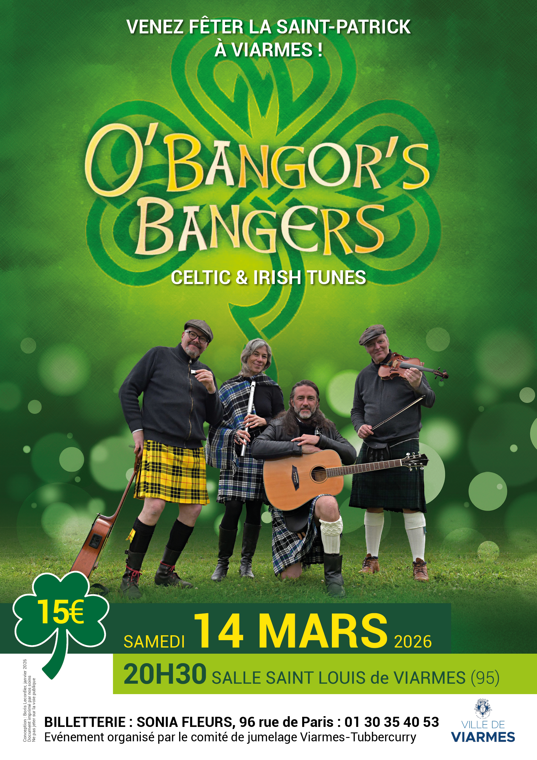 Le comité de jumelage Viarmes-Tubbercurry propose, le samedi 14 mars 2026 à 20h30 à la salle Saint-Louis, une grande soirée dansante et festive, à l’occasion de la Saint-Patrick (un petit accessoire vert serait le bienvenu !)
