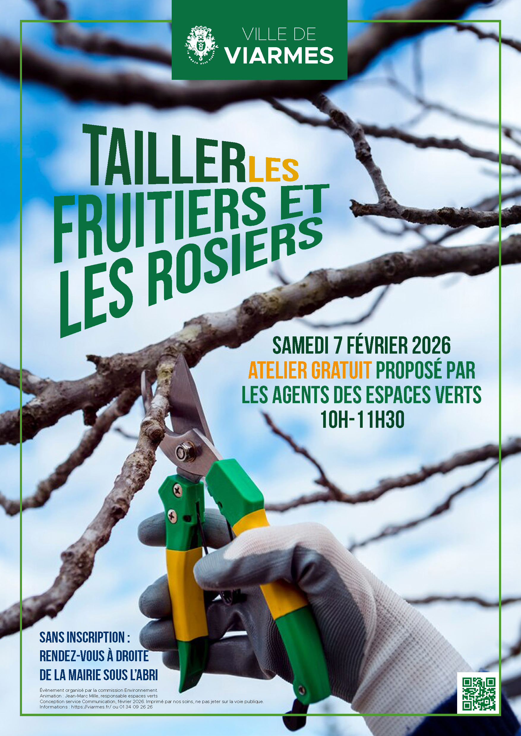 La commission environnement et les agents des espaces verts de la ville de Viarmes proposent un atelier gratuit sur la taille des arbres fruitiers, le samedi 7 février 2026 de 10h à 11h30. Sans inscription, cet atelier est réservé aux habitants de Viarmes. Rendez-vous le 25 janvier à 10h à droite de la mairie, sous l’abri !
