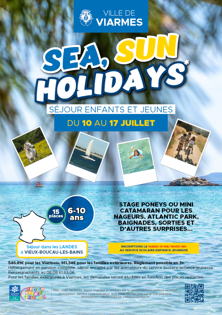 Séjours encadrés par les animateurs du Service enfance-jeunesse. Inscriptions au service Enfance-jeunesse en mairie de Viarmes. Informations au 06.08.61.63.06.